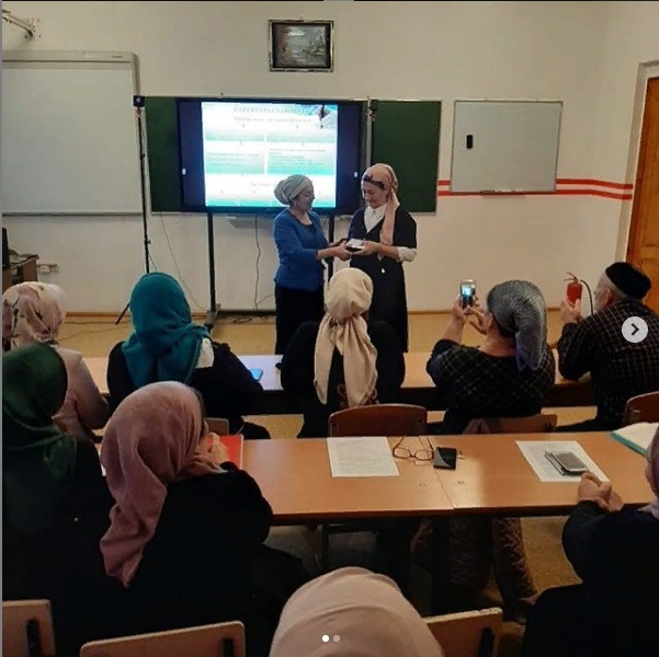 28.12.2019С заслуженной наградой поздравили Аслаханову Тамару Татовну - учителя начальных классов. Она награждена Нагрудным знаком «Почётный работник воспитания и просвещения РФ». Тамара Татовна высококвалифицированный учитель. Добрый, чуткий к детским сердцам, полностью отдающийся своей работе, ответственный работник. Пользуется большим авторитетом среди коллег и родителей. Её выпускники всегда отличаются высоким качеством знаний, активностью в проводимых общешкольных и классных мероприятиях. Отличный наставник для молодых специалистов,