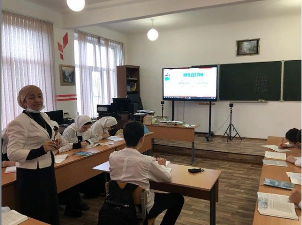 Директор школы на уроке информатики «Компьютерное моделирование физических процессов» в 10 классе.