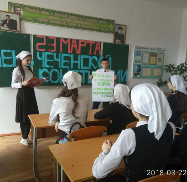 22.03.201803. 2018 г. Сегодня в МБОУ «Новосолкушинская СОШ» прошло ряд мероприятий, посвященных знаменательной дате – Дню принятия Конституции Чеченской Республики, которое вошло в историю на основе всенародного референдума, организованного по инициативе и проведенного под непосредственным руководством первого Президента ЧР Героя России А-Х.Кадырова.